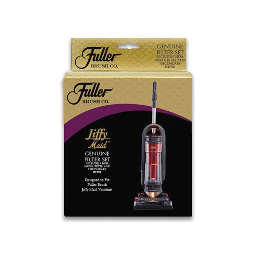 This two-piece genuine replacement filter set is designed to fit Jiffy Maid bagless vacuum models. The high-quality pleated HEPA media filter and secondary foam filter trap dust, debris, and allergen particles for a cleaner air environment. Replace filters regularly for peak vacuum performance.