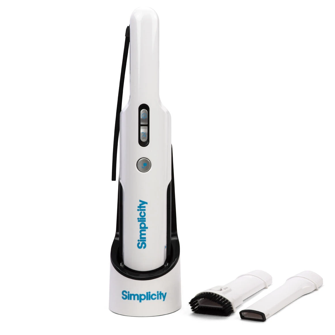 The Simplicity S5 Cordless Hand Vacuum will become your new obsession. With up to 24 minutes of run time, the 10.8V lithium ion battery will have you tackling messes like never before*. Equipped with a storage/charging stand, two different attachments and an extendable dust cup, the S5 is perfect for cleaning things like cabinets, window sills, car seats, corners and so much more. The S5 has two speeds, so bigger and tougher messes are not a problem. AND it only weighs a little over a pound.