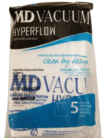 Genuine MD HyperFlow universal fit bags for top filling central vacuums.